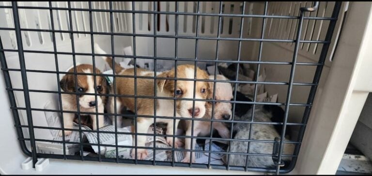 Stuffed inside the small cardboard box were tiny puppies — weak, malnourished, and shaking from cold and fear.