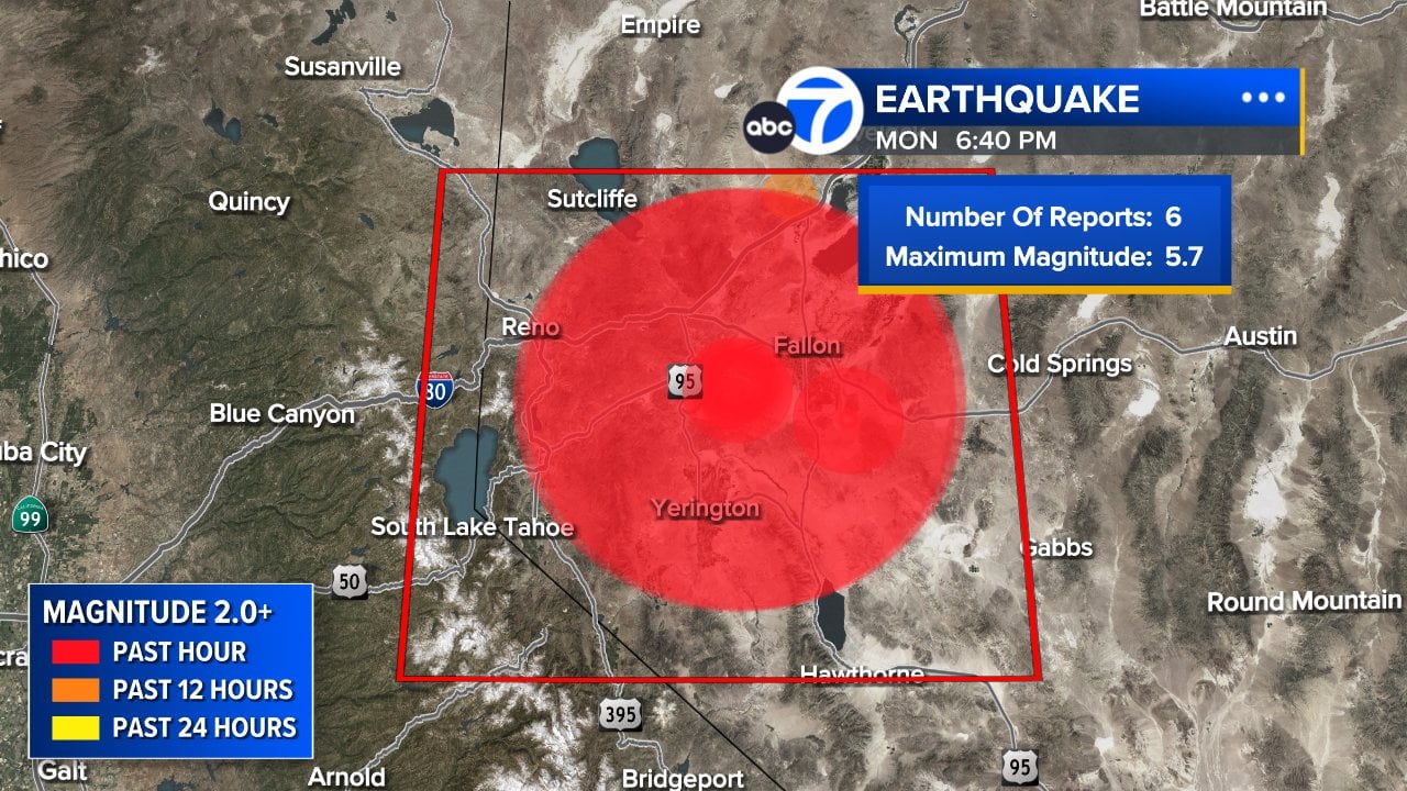 According to Reuters, the earthquake struck Monday evening near Silver Springs, Nevada, at a depth of roughly 9 kilometers, or about 5.6 miles. Other early reporting described the epicenter as southeast of Silver Springs and near Lahontan Reservoir, in a part of Lyon County that sits within a seismically active region of the state. While the epicenter was in a relatively rural area, the shaking traveled widely enough to be felt across western Nevada and into parts of Northern California.