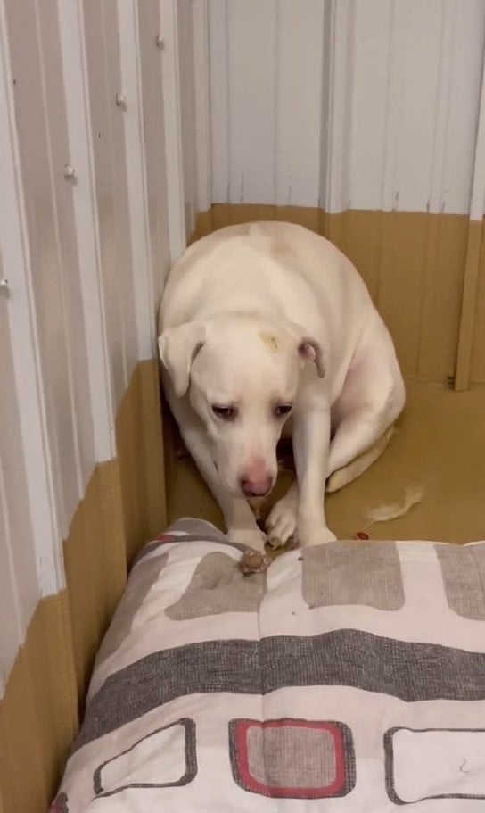 She set up a crate with blankets, creating a space where Mable could decompress and feel secure.