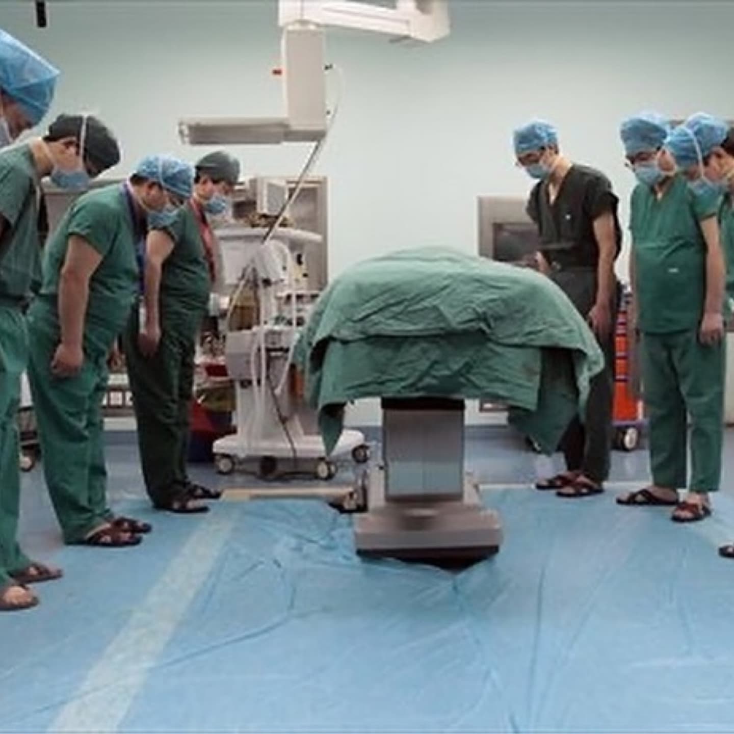 Doctors and nurses line the hallways, bowing in respect to the person who is about to give the ultimate gift.
