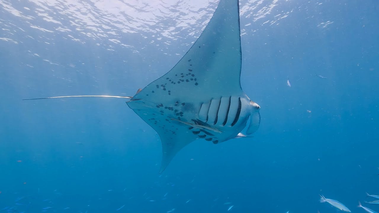 - Triangle Formation – Where one manta ray leads and two follow.